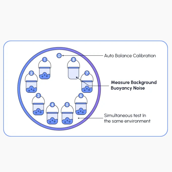 Analizator o wysokiej przepustowości z 4 lub 8 stanowiskami analitycznymi, oferujący jednoczesną analizę próbek. Dzięki umieszczeniu wszystkich stanowisk analitycznych w tej samej komorze adsorpcyjnej, system zapewnia jednolitość warunkach środowiskowych testowych, umożliwiając bezpośrednie i niezawodne porównanie wydajności próbki.